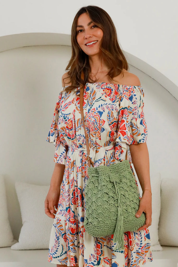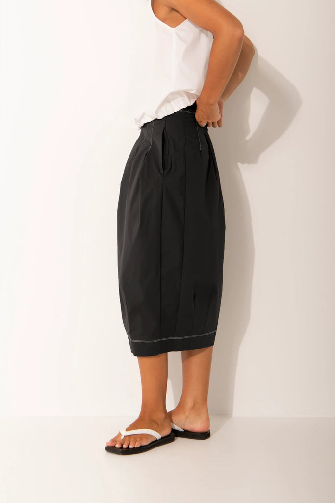 Crisp Cotton Stretch Bubble Midi Skirt Belem - Moss/White