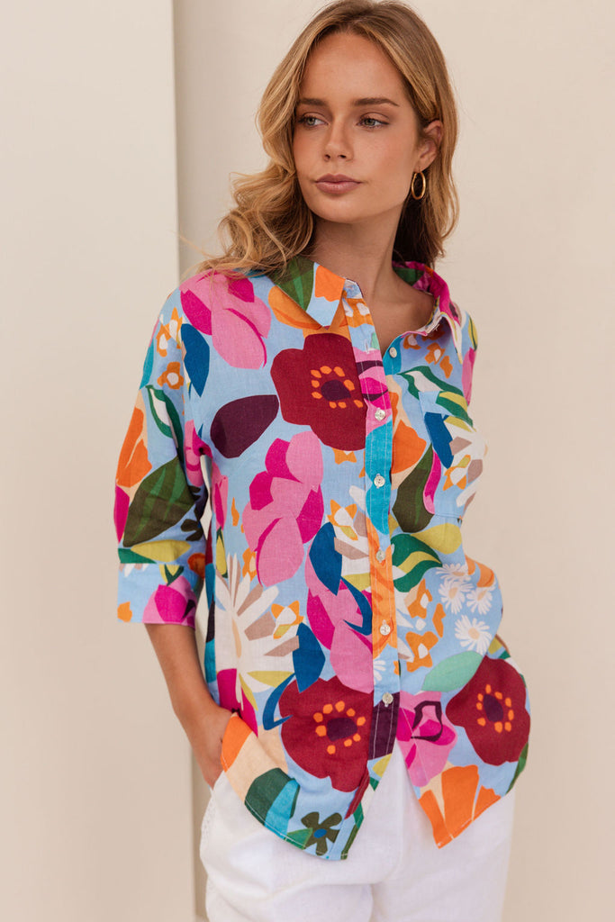 Linen 3/4 Sleeve Shirt – Bloom Burst