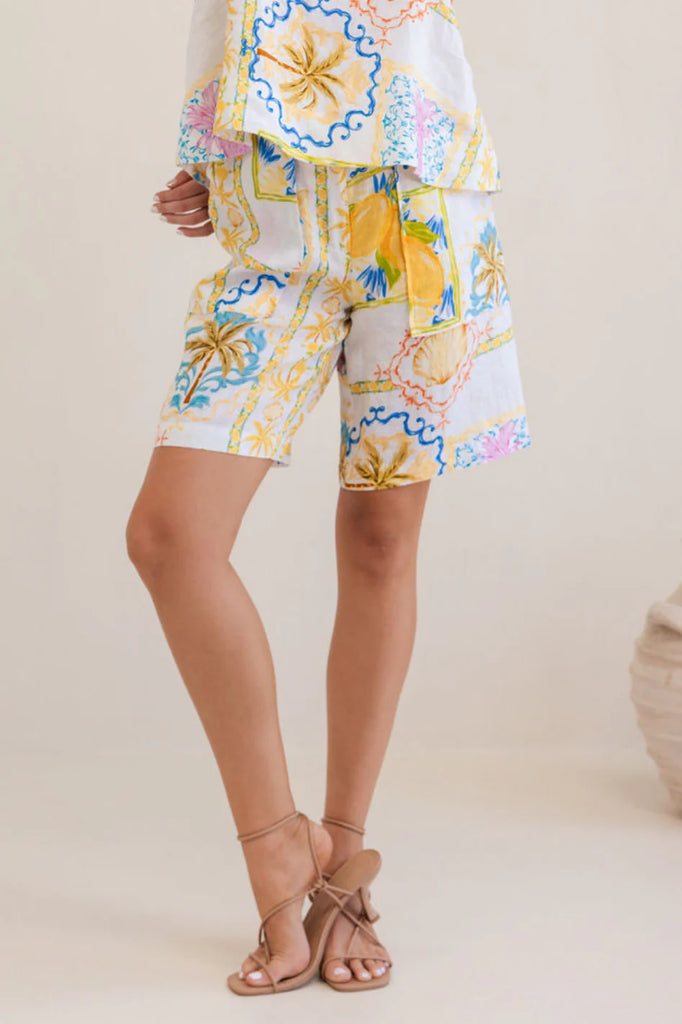 Linen Elastic Waist Pocket Midi Short - Amalfi Dreams