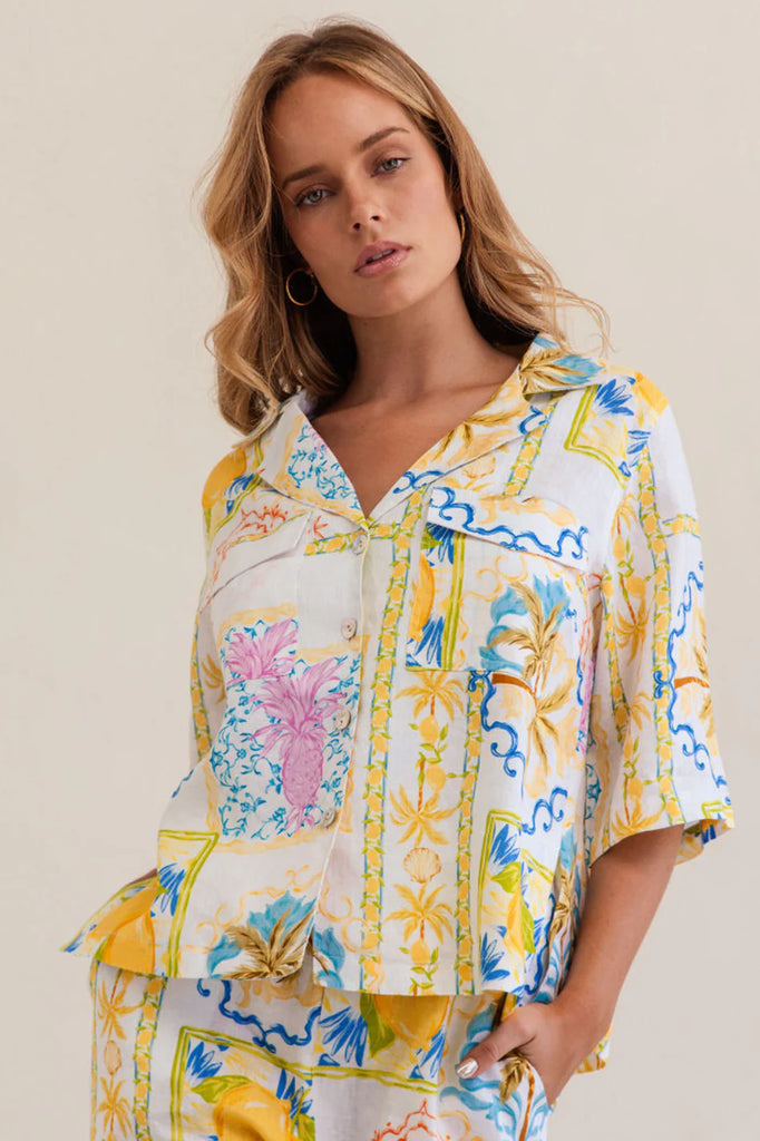 Linen Cotton Ruffle Blouse - Zinnia Print