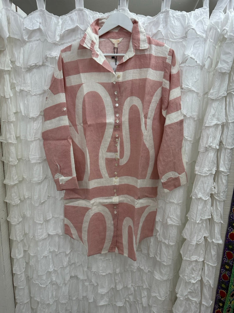 Linen Shirtmaker Dress- Pink Abstract