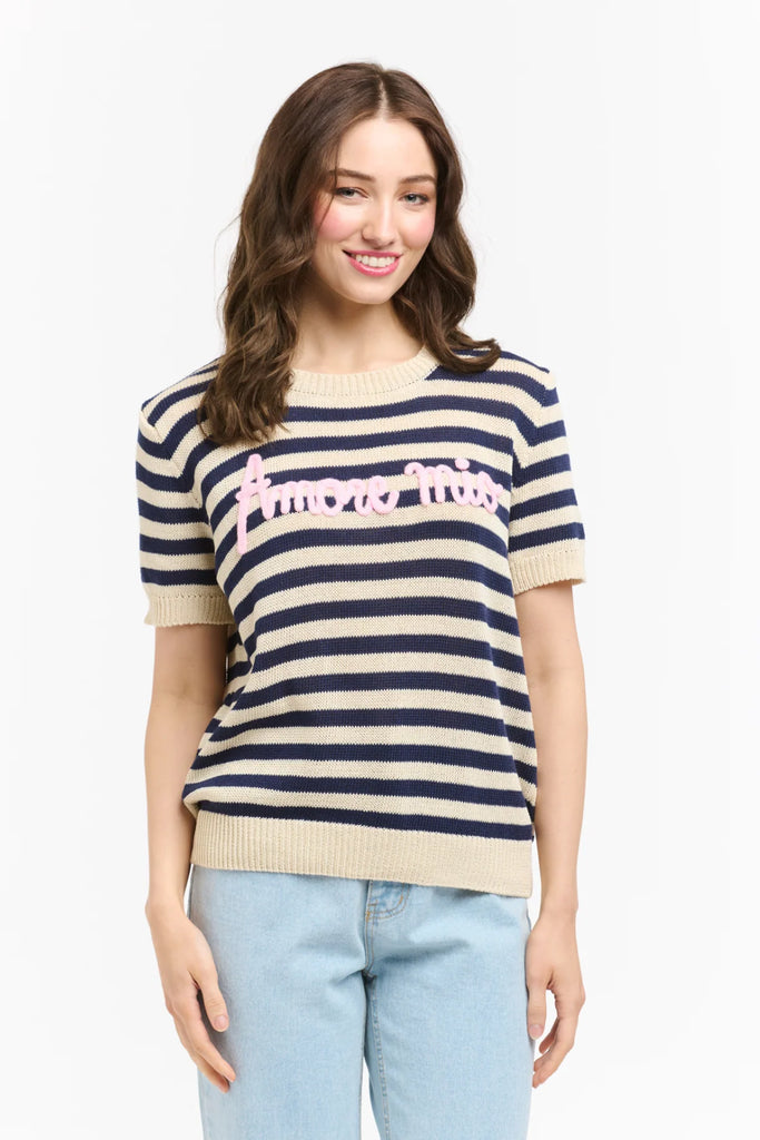 Stripe Short Sleeve Crew T-Shirt - Navy/White