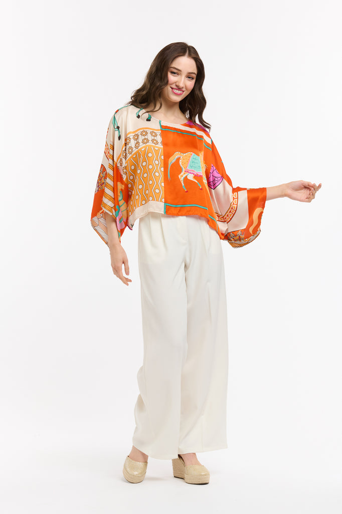Viscose Horse Top – Beige/Orange