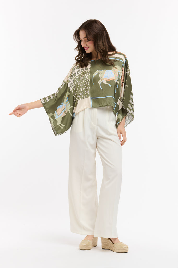 Viscose Horse Top – Beige/Military
