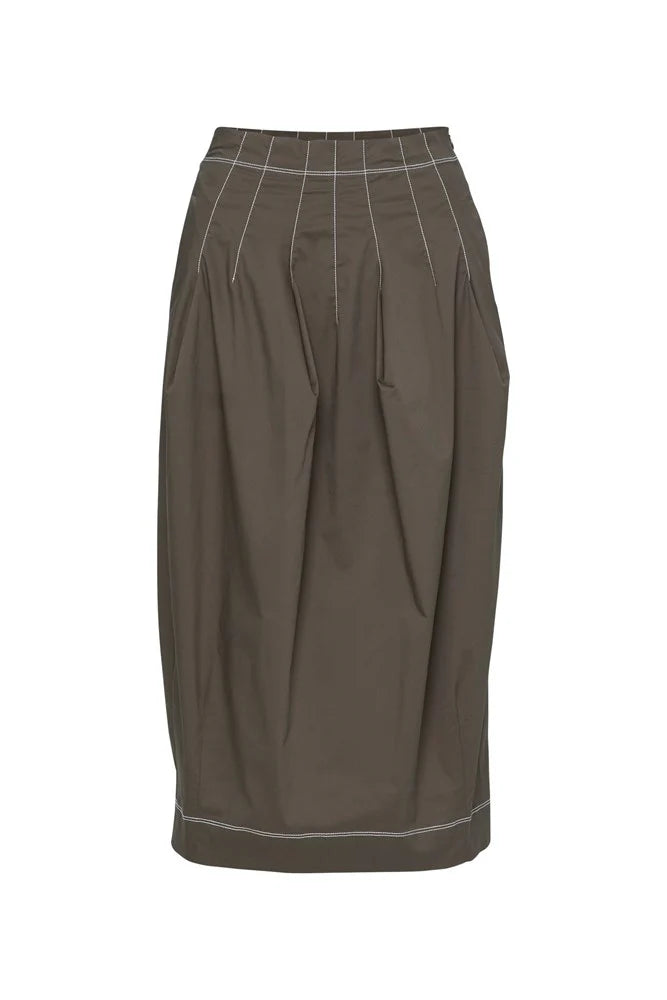 Crisp Cotton Stretch Bubble Midi Skirt Belem Moss