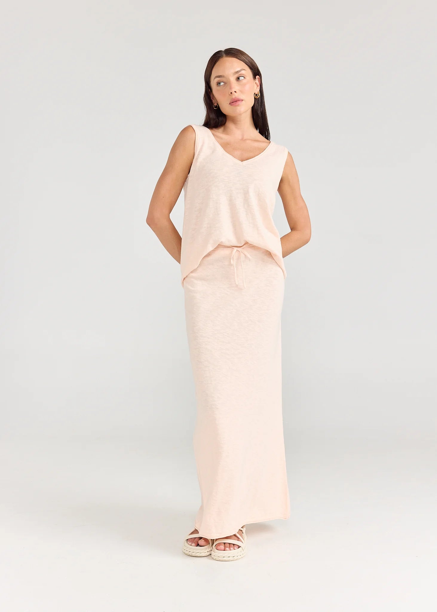 Crafted in our soft linen jersey fabrication, the Saskia Skirt is a versatile silhouette that can be worn low to mid-waist, featuring an A-line silhouette. Complete the outfit with the matching Georgia Top.