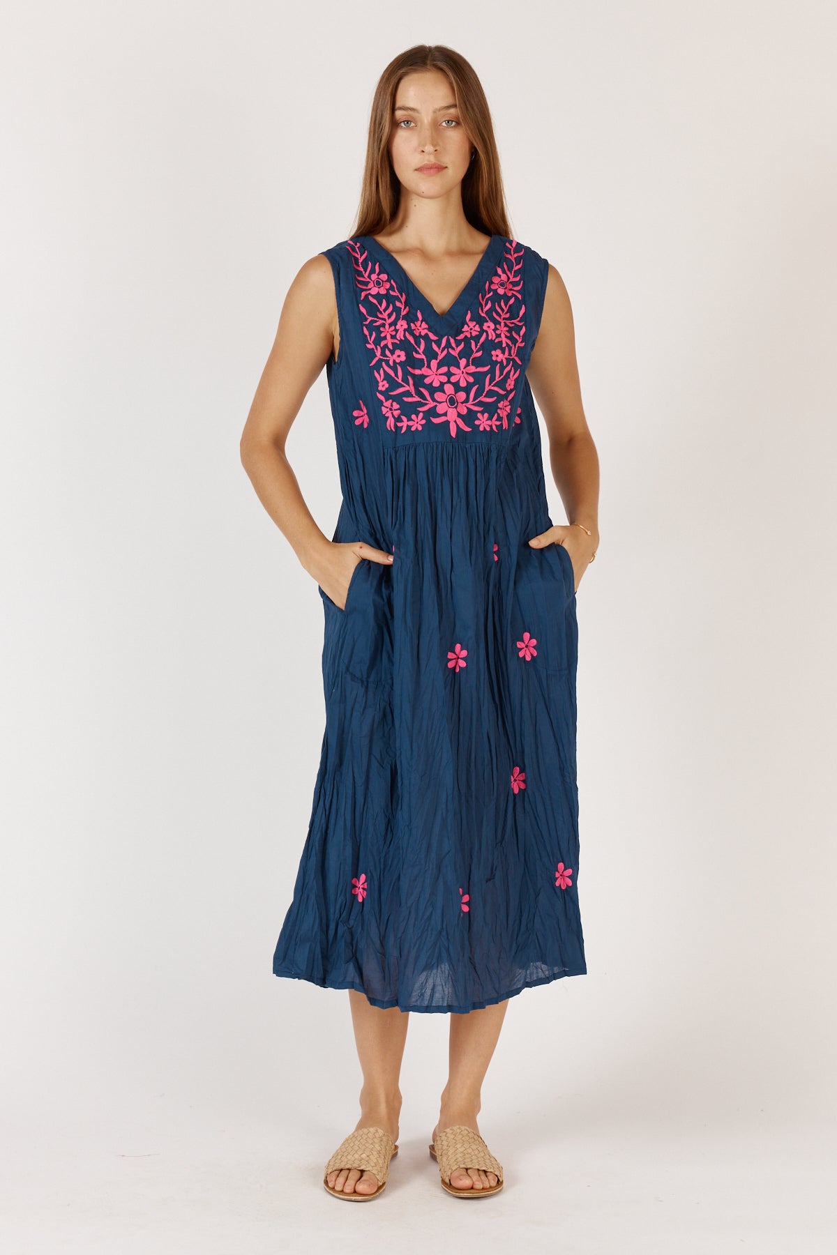 Step into timeless style with the Rubyyaya Andaman Midi, crafted from 100% breathable cotton. This beautifully designed dress features intricate embroidered front detailing that adds a touch of artisan charm. The flattering midi length and practical side pockets make it the perfect blend of comfort and sophistication. Designed in Australia, the Andaman Midi is ideal for everything from relaxed weekends to resort getaways — a versatile piece that celebrates effortless elegance and ease of wear.