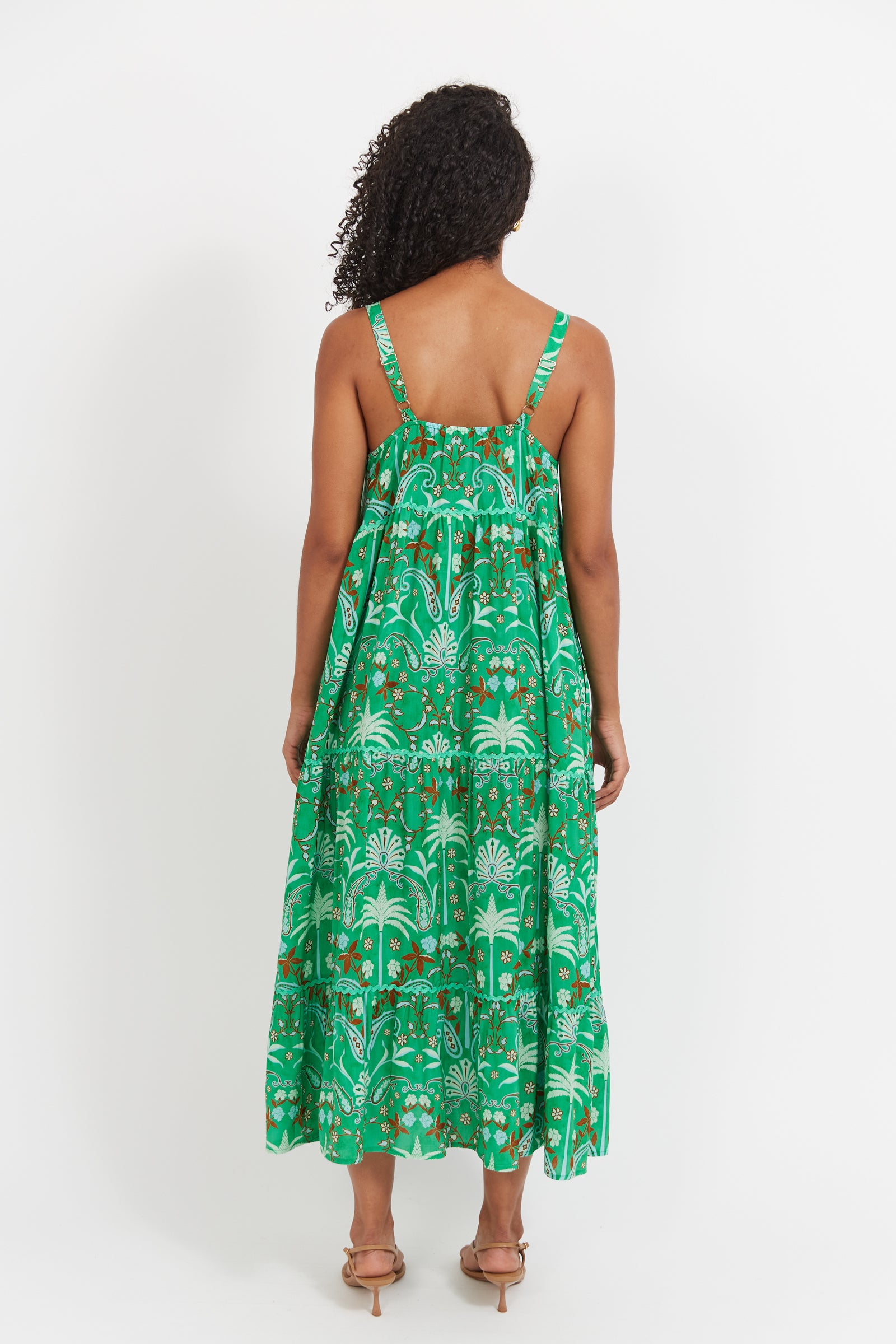 Your no-fuss, go-everywhere summer hero. The Haiti Tank Maxi Dress is tiered, flowing, and versatile - from beach strolls to balmy nights out. Featuring a straight neckline, adjustable straps with gold-tone hardware, and an elasticated back panel for comfort. Ric-rac trim along the neckline and skirt tiers adds playful charm, while internal side pockets keep things practical.