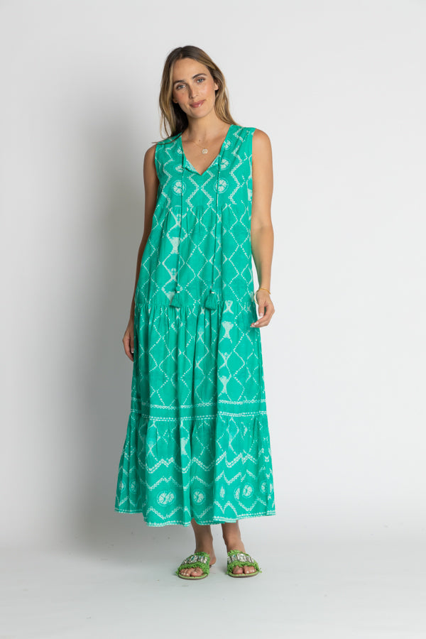 Elevate your everyday style with the LulaLife Kumo Maxi Dress, a breezy wardrobe essential designed for comfort and effortless elegance. Crafted from 100% cotton in a striking Shibori print, this maxi features a relaxed fit, round neckline with split ties and tassels, and soft gathers from the bodice for a flattering flow. The tiered skirt with side pockets adds functionality while keeping it chic. Designed in Australia, this above-ankle-length dress is perfect for warm days, travel, or laid-back weekends.