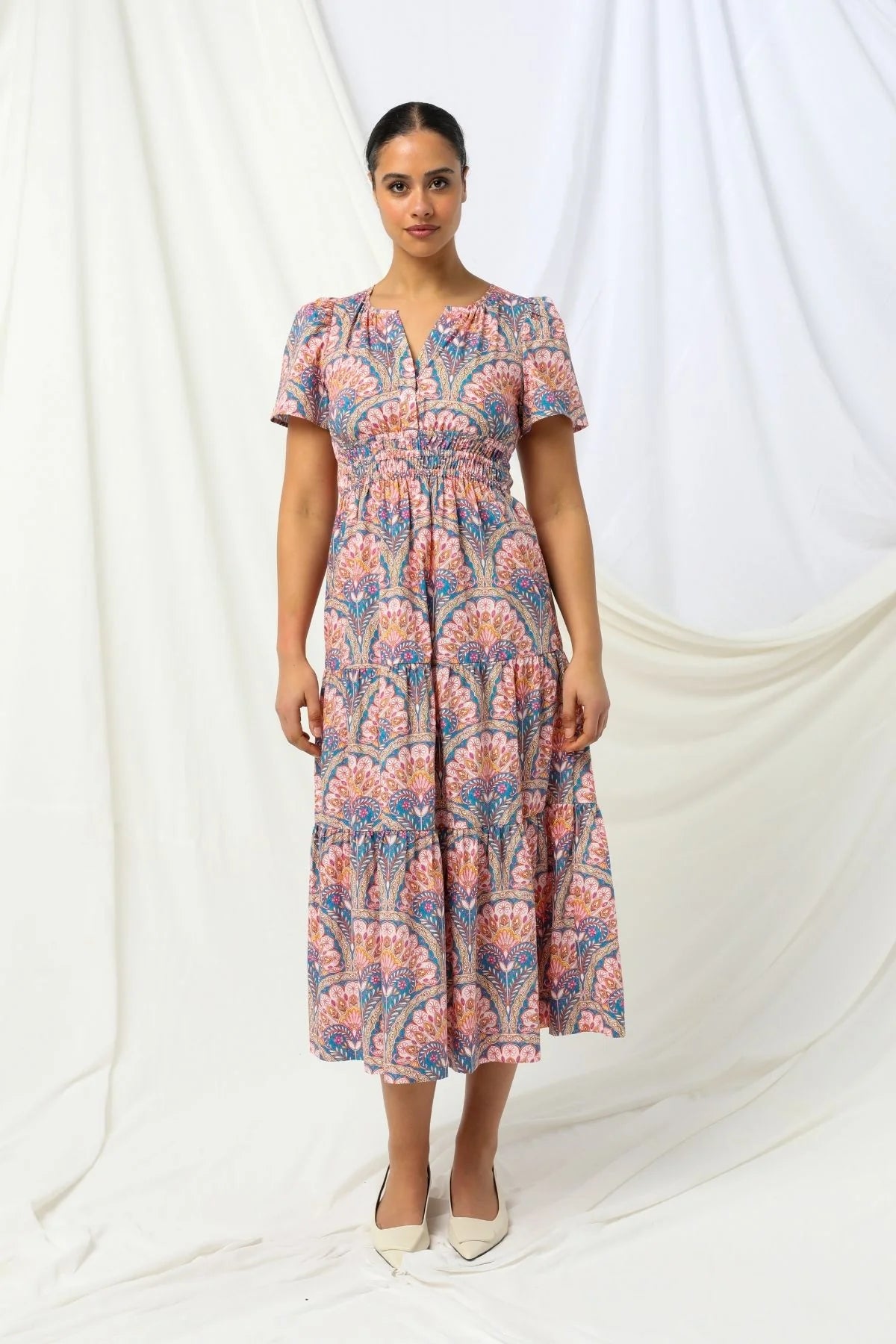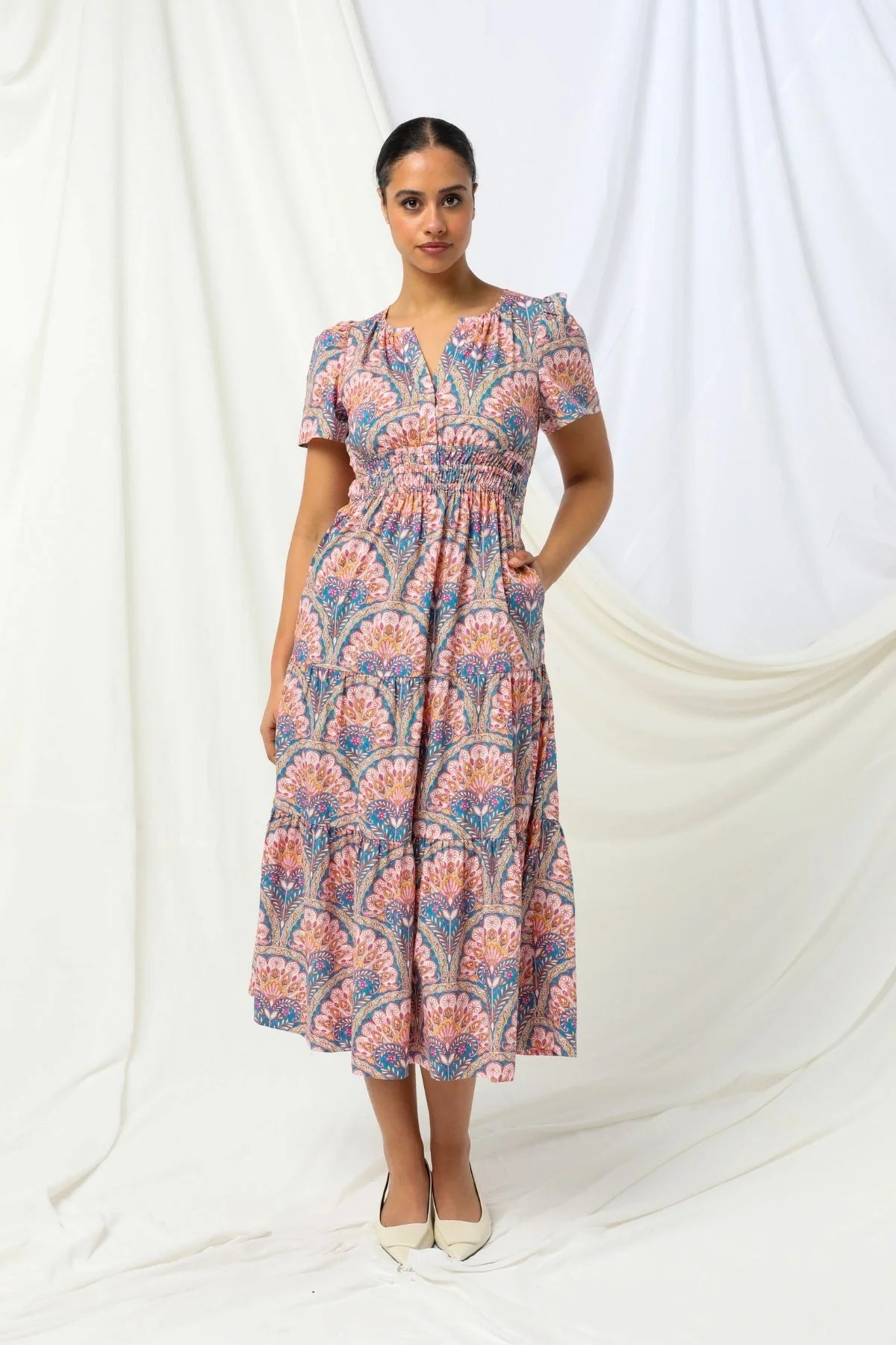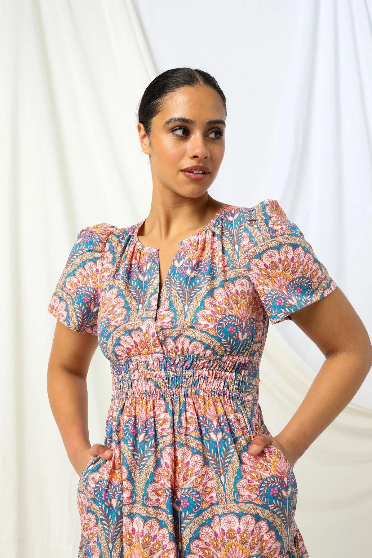 With short sleeves and a flattering split scoop neckline, this dress stands out with its bold floral print that's equal parts charming and chic. Light, floaty, and effortlessly stylish, it's made to take you from brunch dates to sunset drinks without missing a beat.