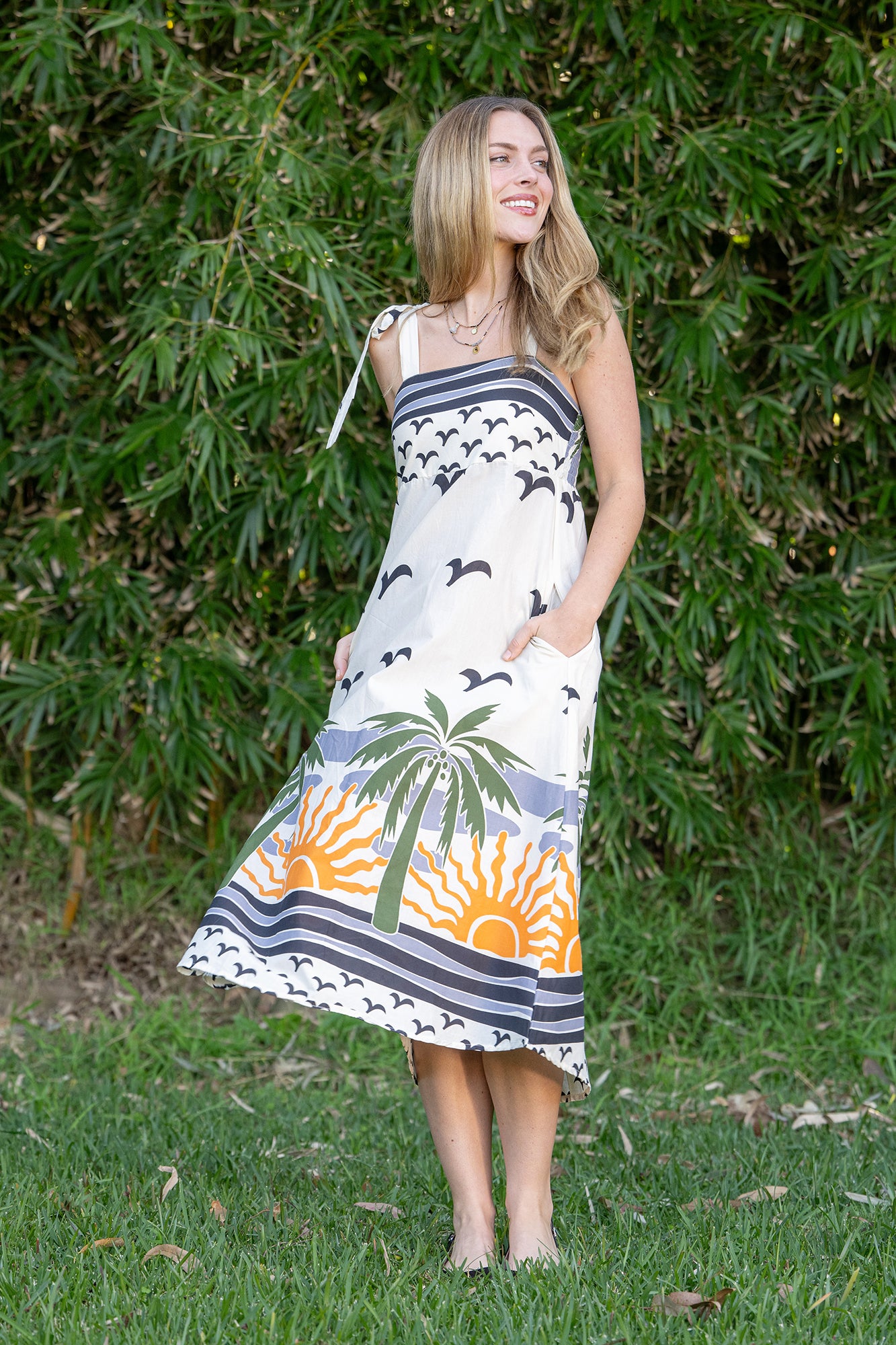 Finished with adjustable tie straps for a custom fit, this dress can be worn loose and relaxed or styled with a belt for a more defined shape. An easy piece for holidays, long lunches, or everyday Summer wear.
