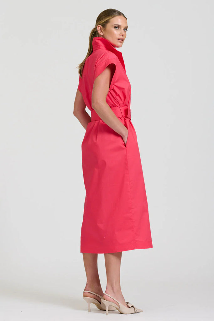 Fabulous Fifi, a gorgeous new silhouette, midi length, feature over stitched cap sleeves, placket and belt. Dress her up or dress her down, she's sophisticated and stylish. Crafted from 100% cotton.