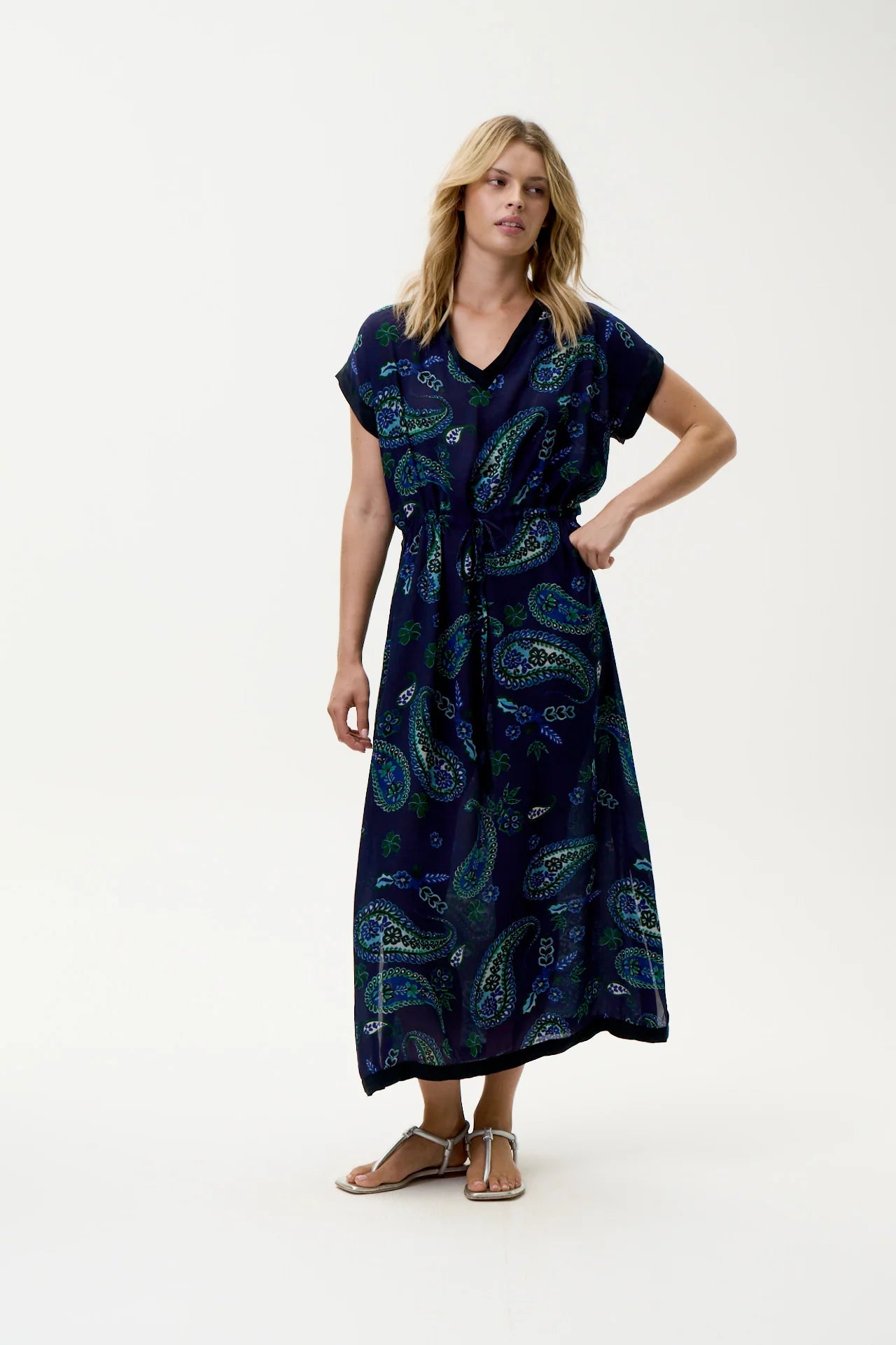 With short sleeves, a v-neckline, and a drawstring waist which ensures a flattering fit, the Sami maxi is a must-have for your suitcase.