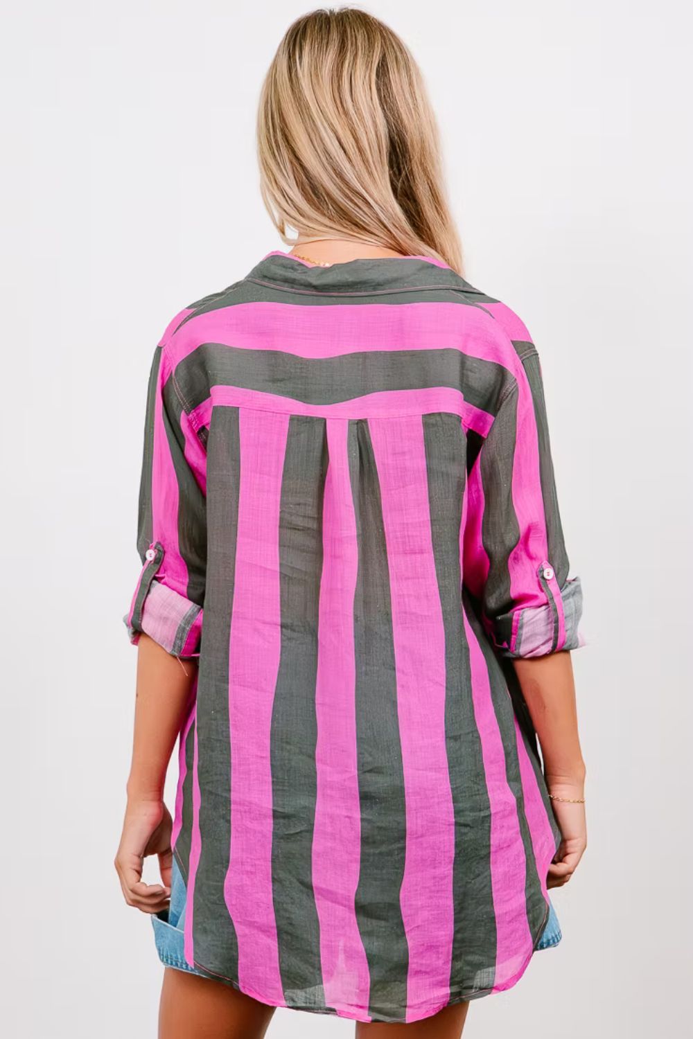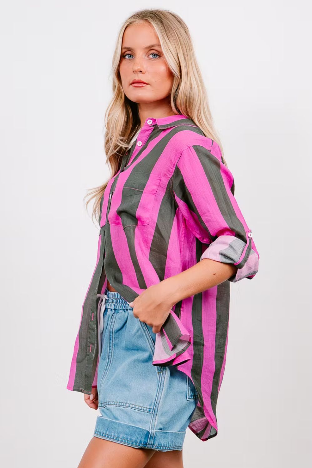 - Sleeves can be worn full length or adjusted at the buttoned cuff for a laid-back edge