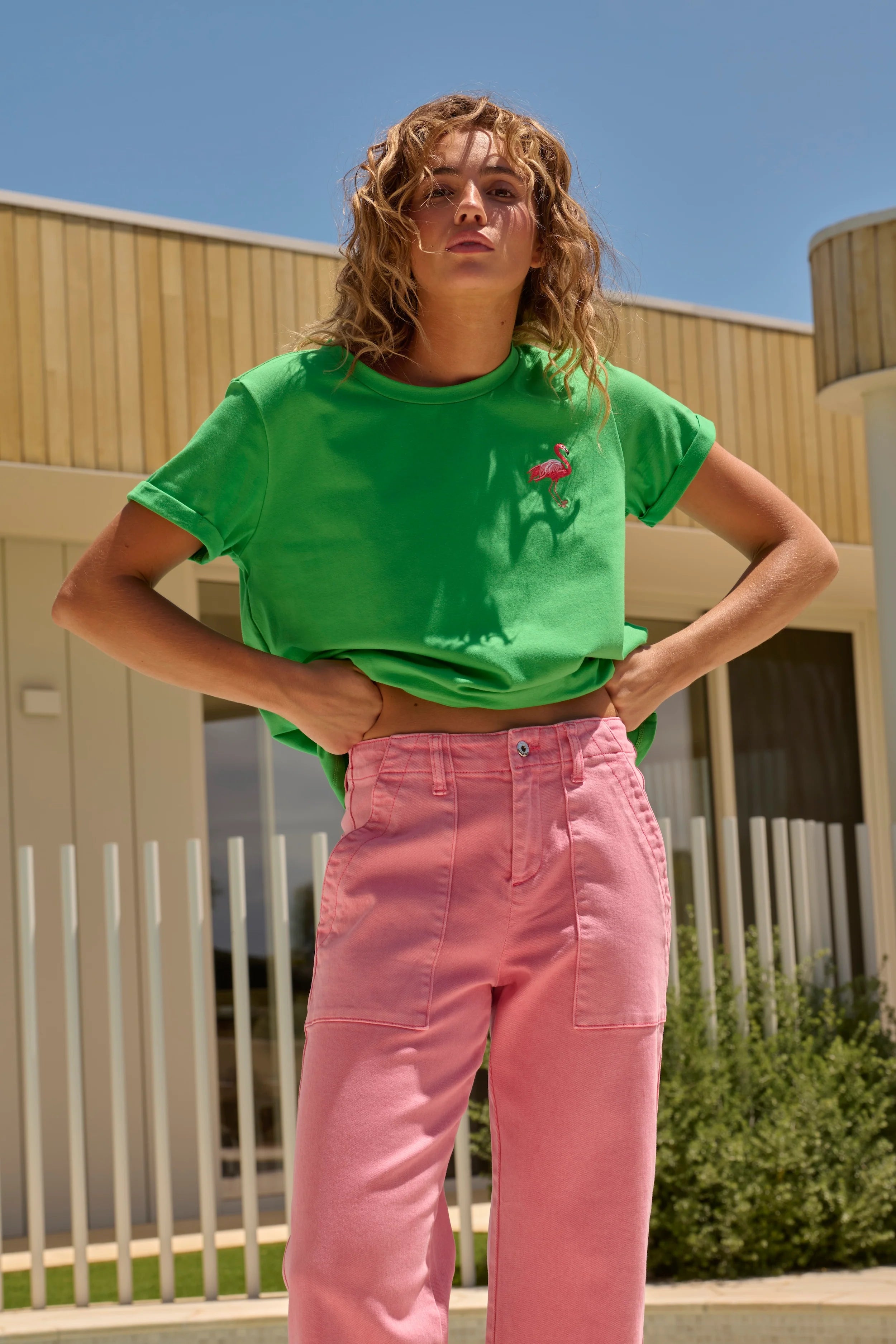 Olivia Tee | Flamingo - Apple Green