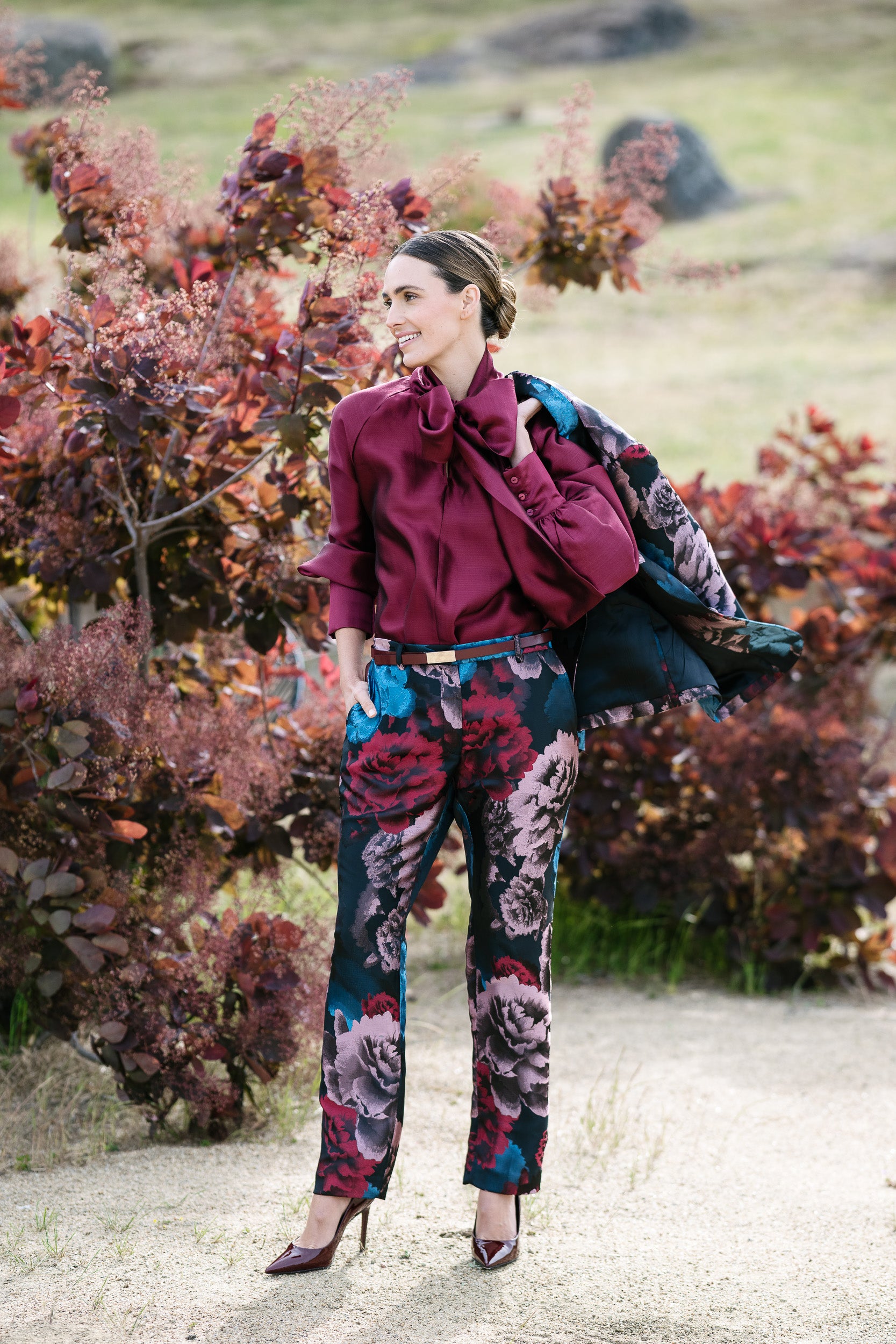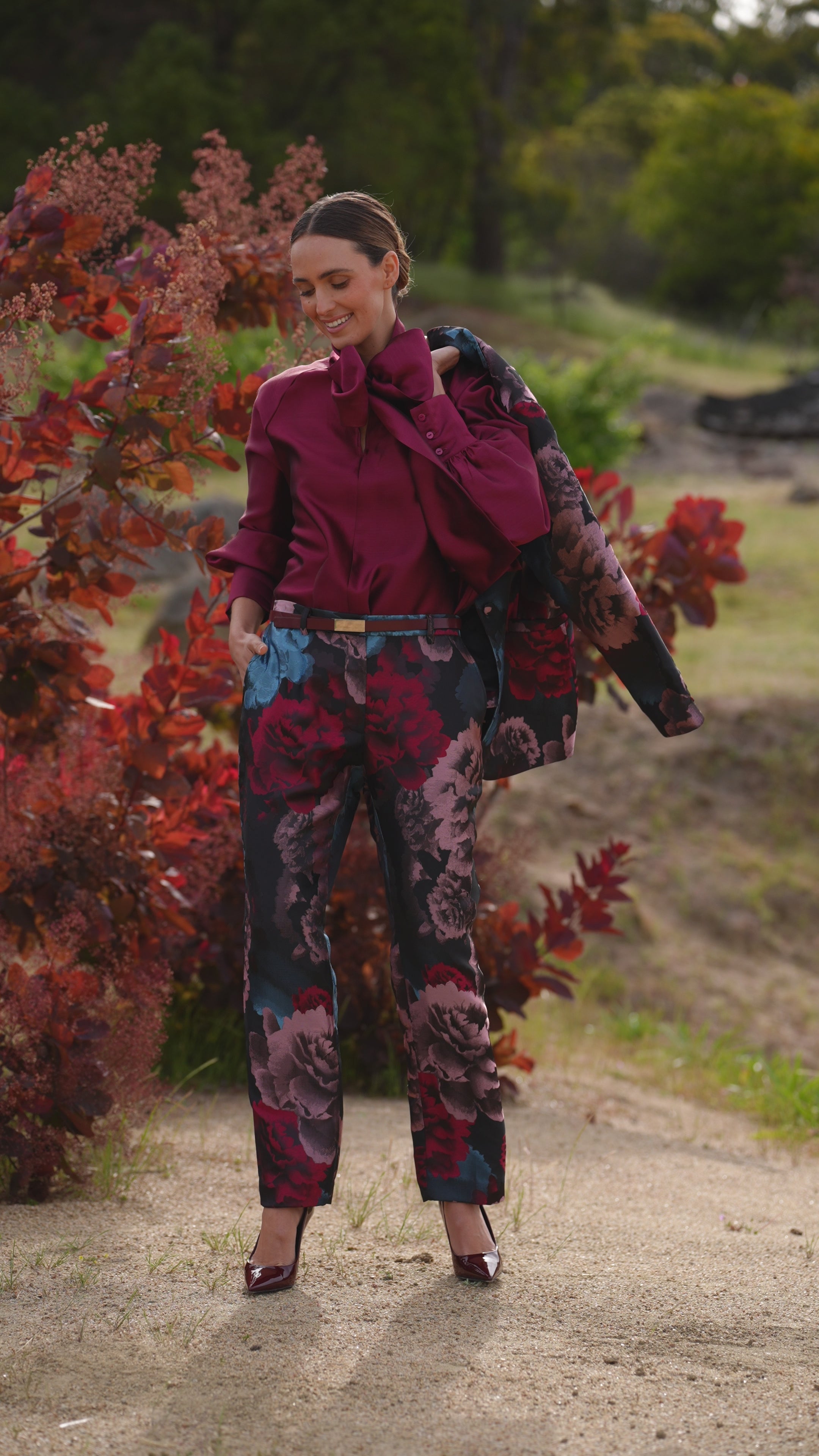 Crafted with attention to detail and fully lined for comfort, the Darling Pants are designed to stand out on their own or pair seamlessly with the Zazzle Jacket in matching Midnight Roses for a head‑turning ensemble.