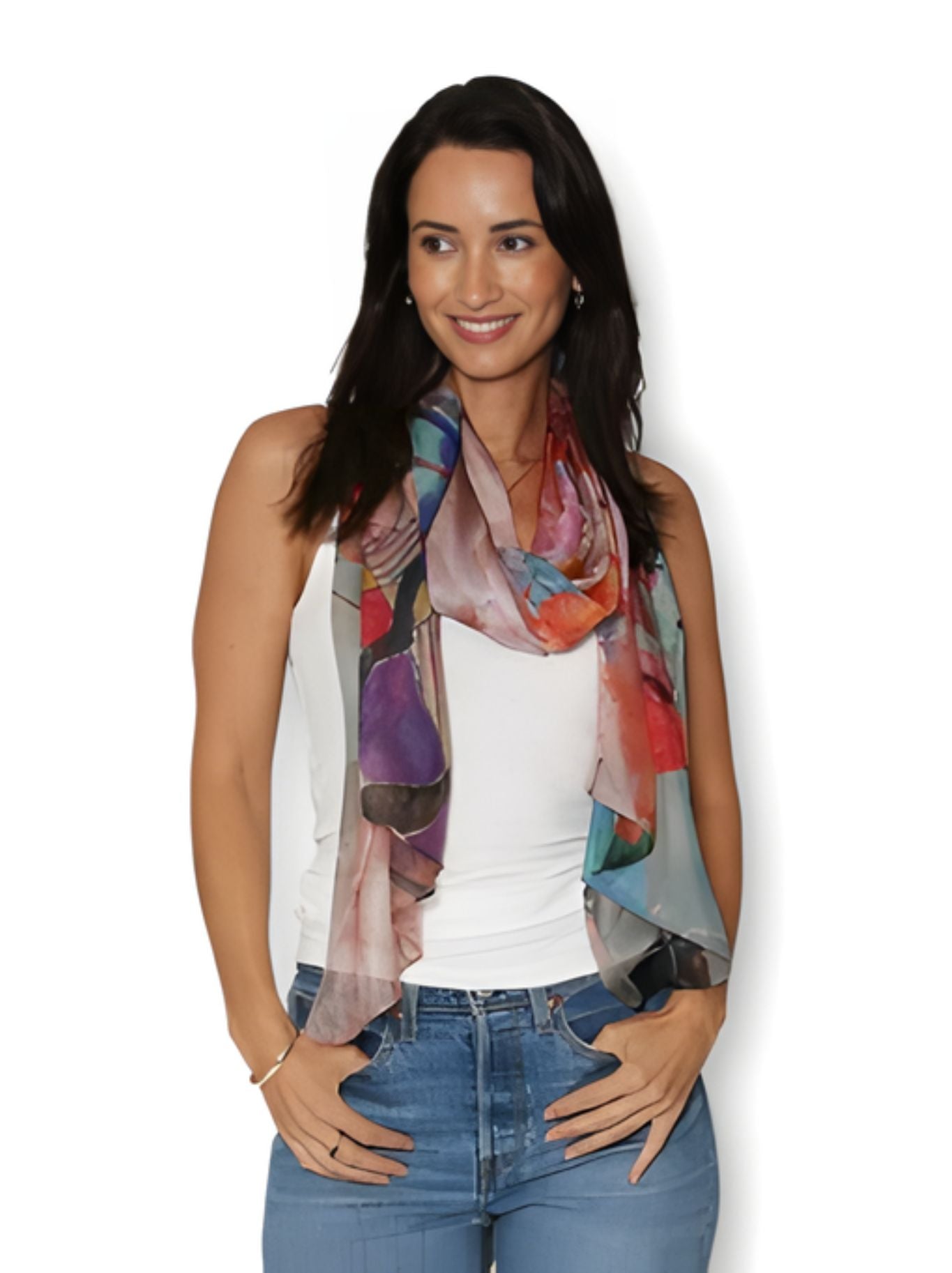 Fabric: Silk Chiffon, the softest scarf you will ever wear. The material is a 100% natural fibre, so it is breathable, warm and yet will not overheat.