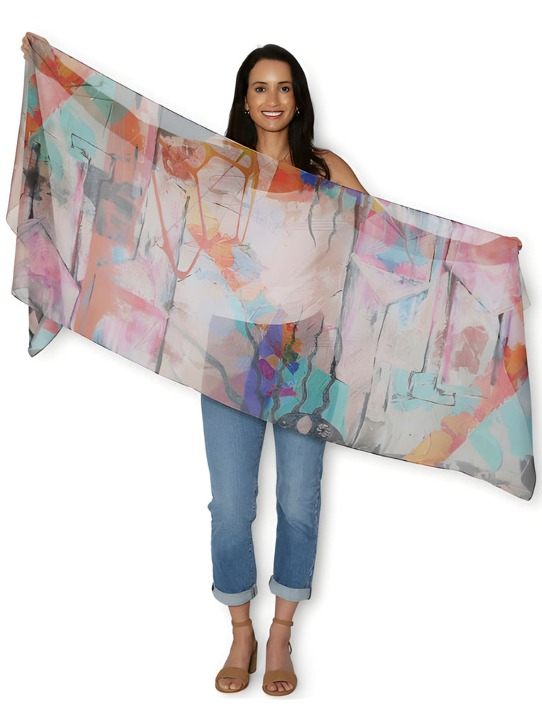 More details: Lightweight design, easy to carry around, rectangle shape, hand designed by a real artist. All scarves come in a gift box.