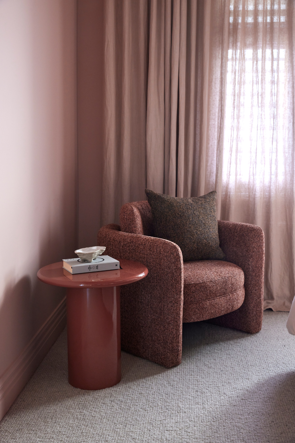 With an inviting deep plum hue, it features a plush construction with a contemporary silhouette for a sophisticated aesthetic.