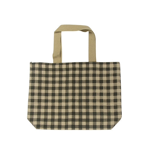 This Gingham Tote, measuring 48cm x 35cm x 15cm, offers a charming and environmentally conscious solution for your everyday carry. Crafted from a soft Jute and Cotton blend, it’s ideal for grocery runs or supermarket trips. Its adaptable style also suits picnics, markets, and daily errands, making it a practical and fashionable companion.