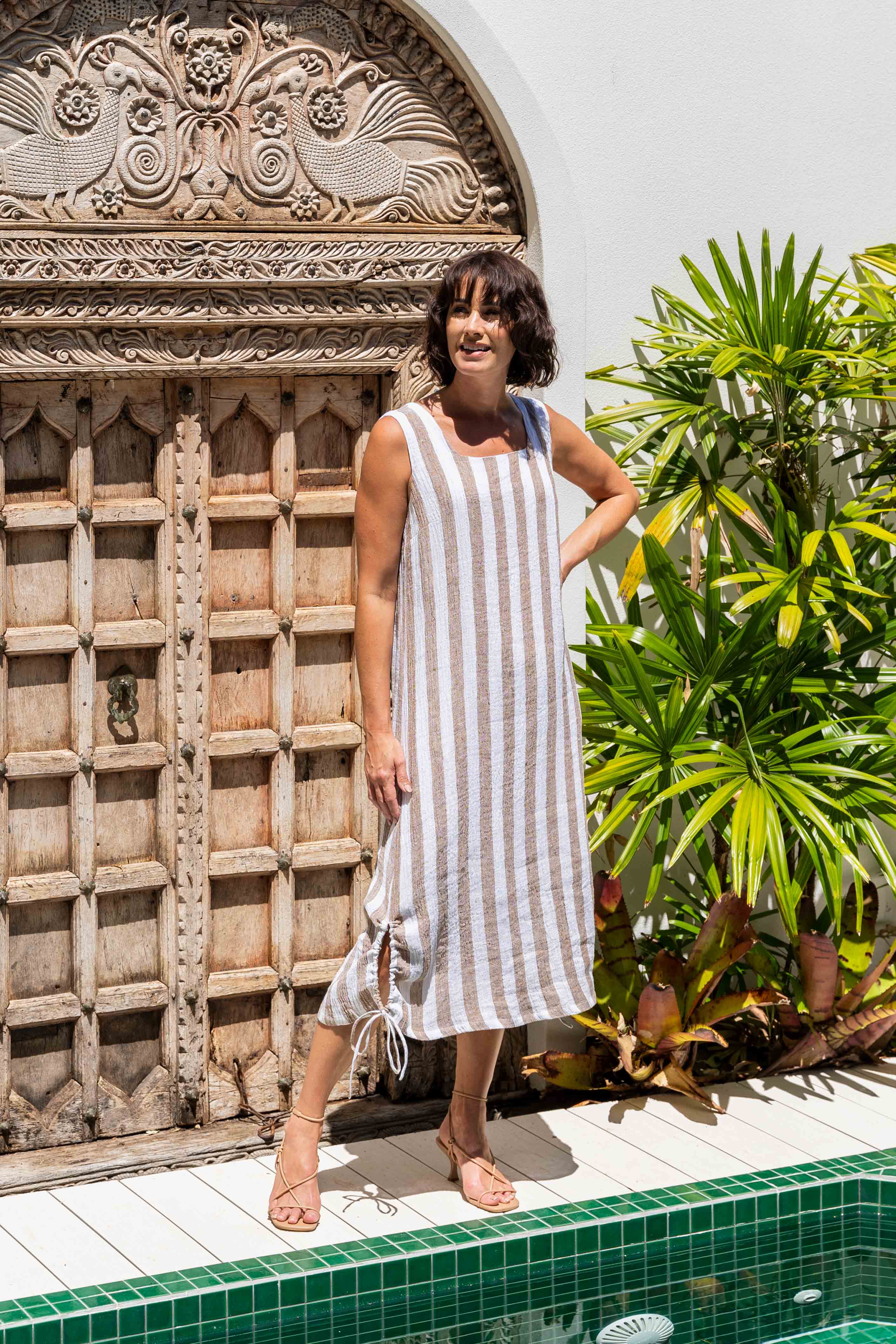 Maxi Dress with Rouche Sides - Bronze Stripe