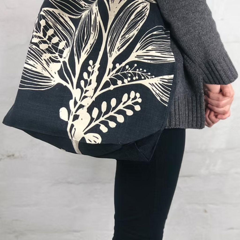 Botanical screen printed textured bag. Made from 100% natural cotton this bag can be worn over the shoulder and are a fantastic environmentally friendly alternative to plastic bags.