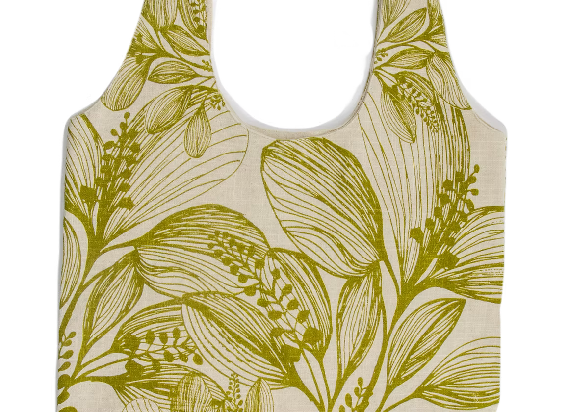 Botanical screen printed textured bag. Made from 100% natural cotton this bag can be worn over the shoulder and are a fantastic environmentally friendly alternative to plastic bags.