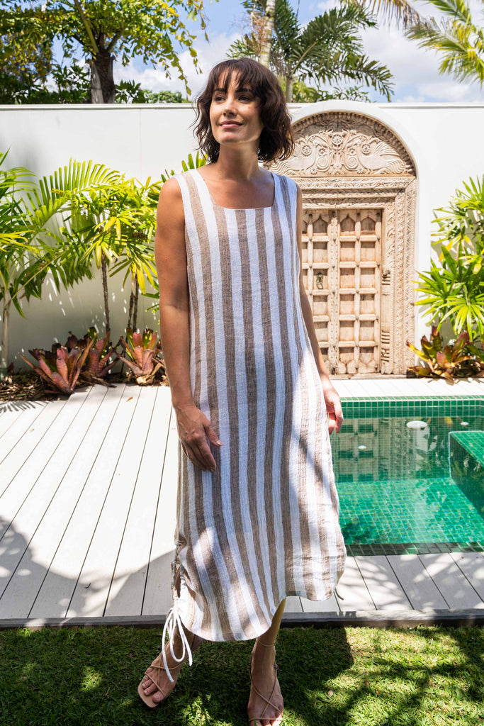 Maxi Dress with Rouche Sides - Bronze Stripe