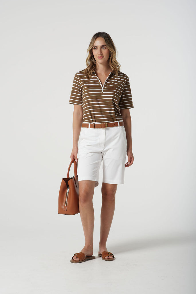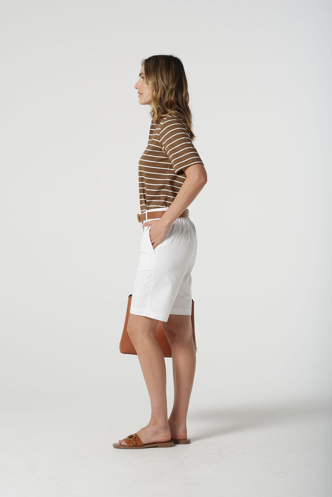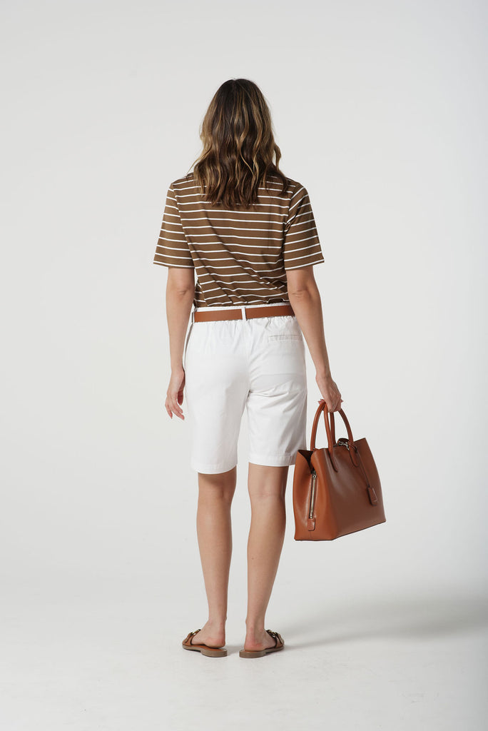 The Tailored Short by Goondiwindi Cotton offers a smart and versatile look for warm-weather dressing. Made from a soft cotton blend with a touch of stretch, these shorts provide both comfort and a polished fit. Perfect for pairing with casual tops or dressier blouses.