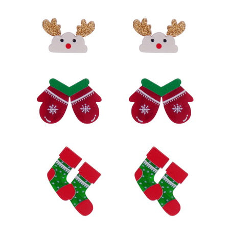 Celebrate the season in style with our Christmas Stud Set Earrings — a cheerful trio featuring reindeer, mittens, and stockings. Designed in Australia, these playful studs add a touch of festive fun to any outfit and make a great gift or stocking stuffer.
