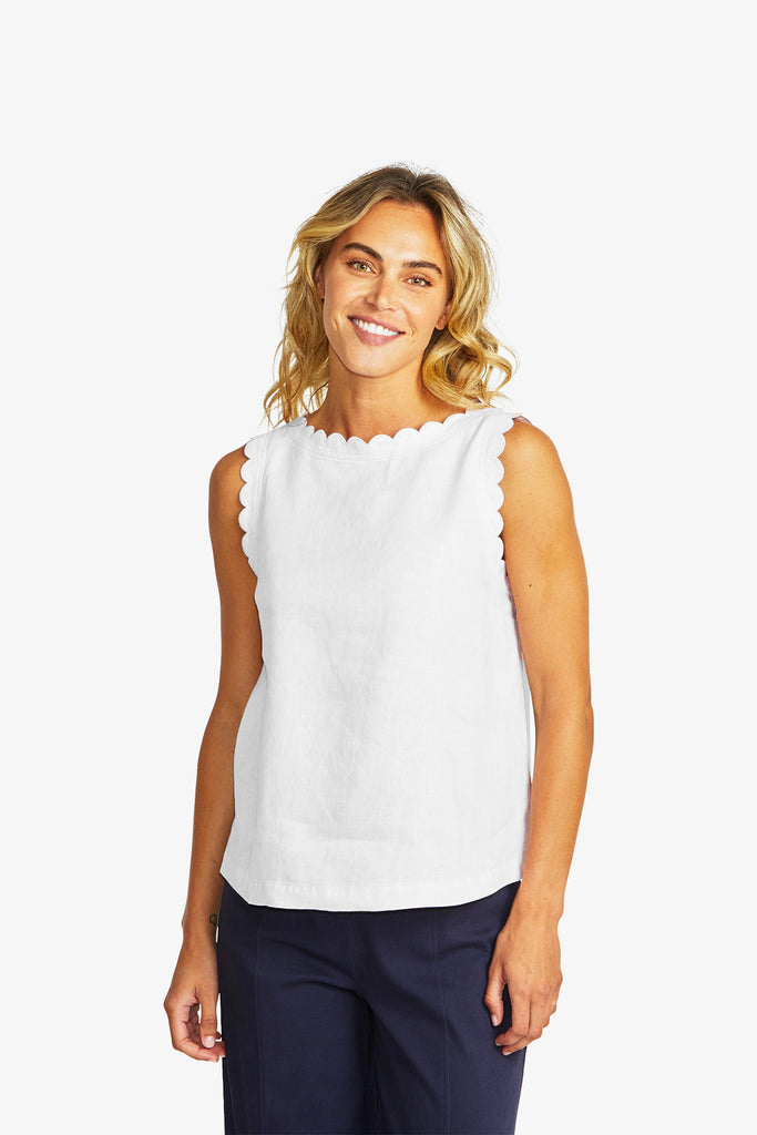 Lucy Linen Scallop Top in White