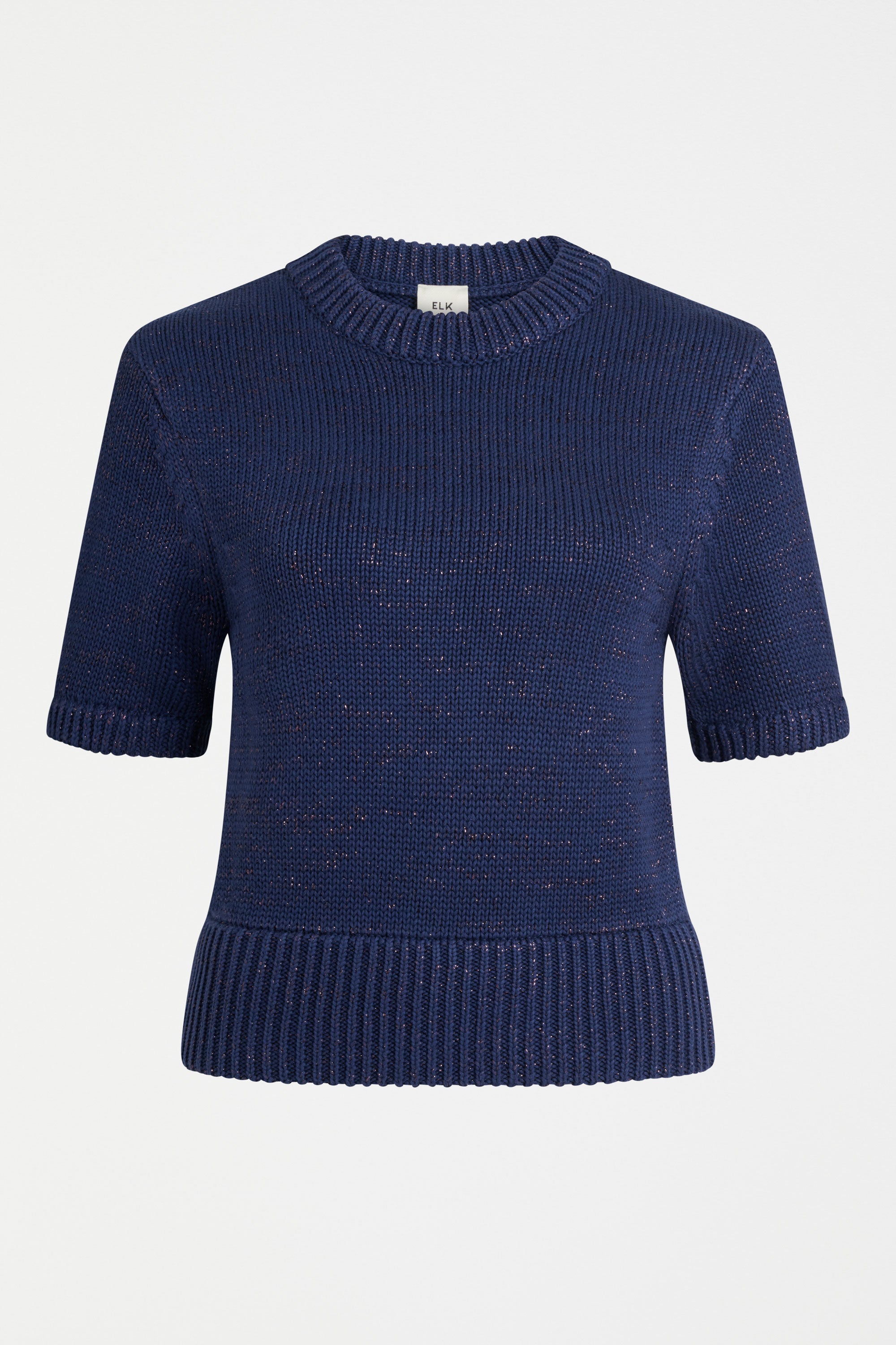 The Luft Lurex Knit Top is a chunky knitted top in a soft organic cotton yarn with a fine metallic thread woven throughout, creating a gentle shimmer. This close fit, short sleeve sweater features a slightly cropped body length and double rib finish at the hem, neck, and sleeves. Its classic shape makes it a timeless wardrobe staple and the perfect warm layer to take you from every day and into the evenings, pair with high-waisted trousers for a playful, elevated look.