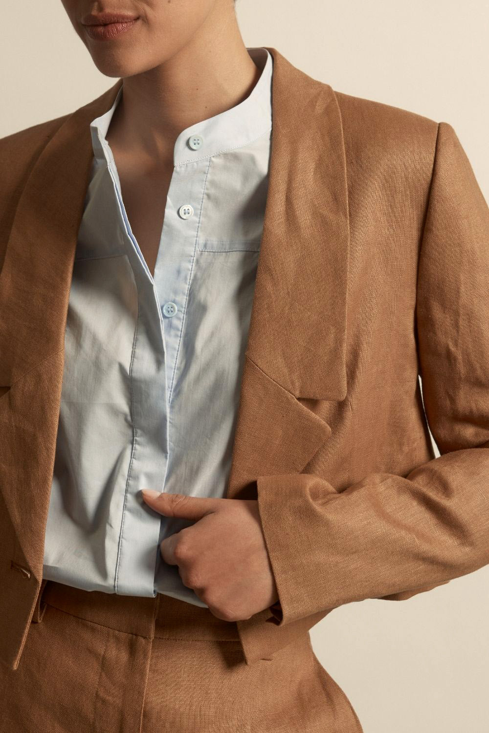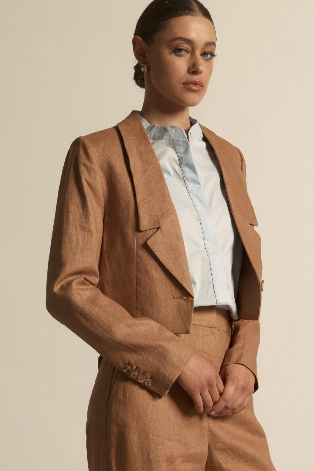 - true-cropped blazer silhouette balanced with full-length sleeves