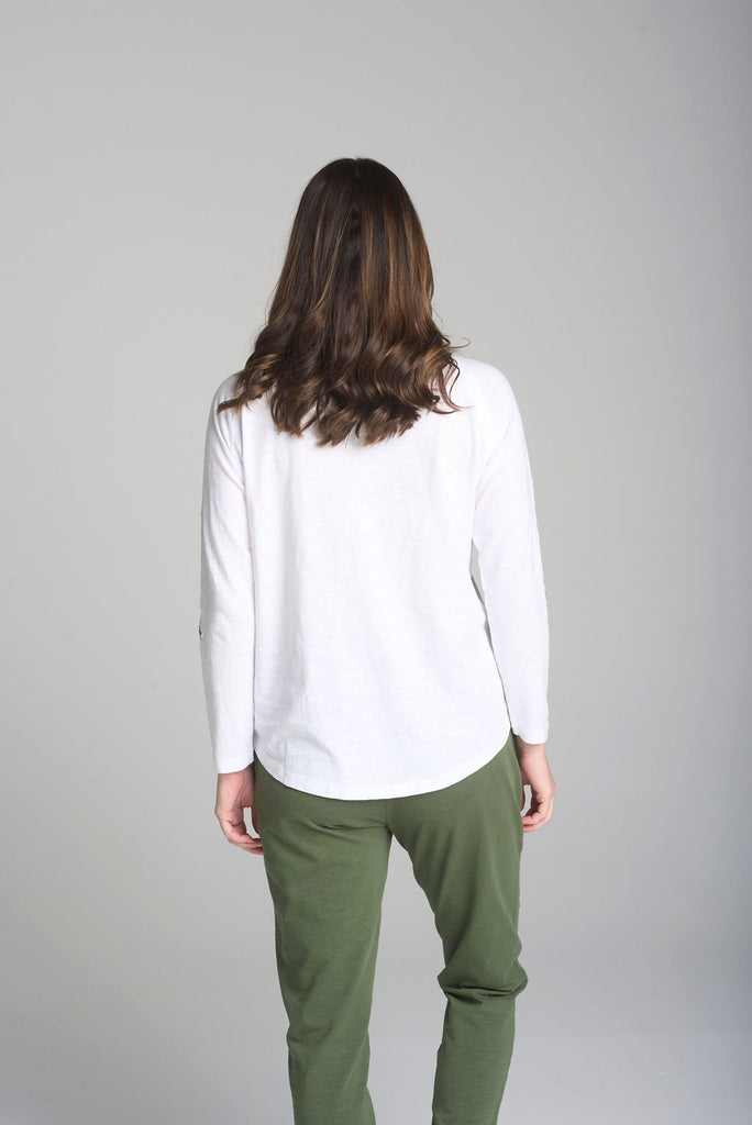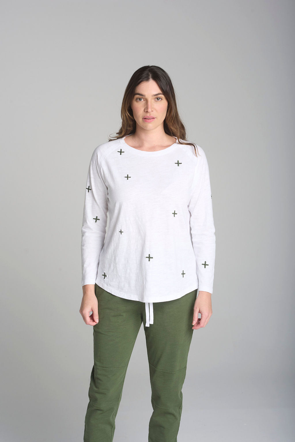 Cross Embroidered Long Sleeve Tee White/Bronze Green