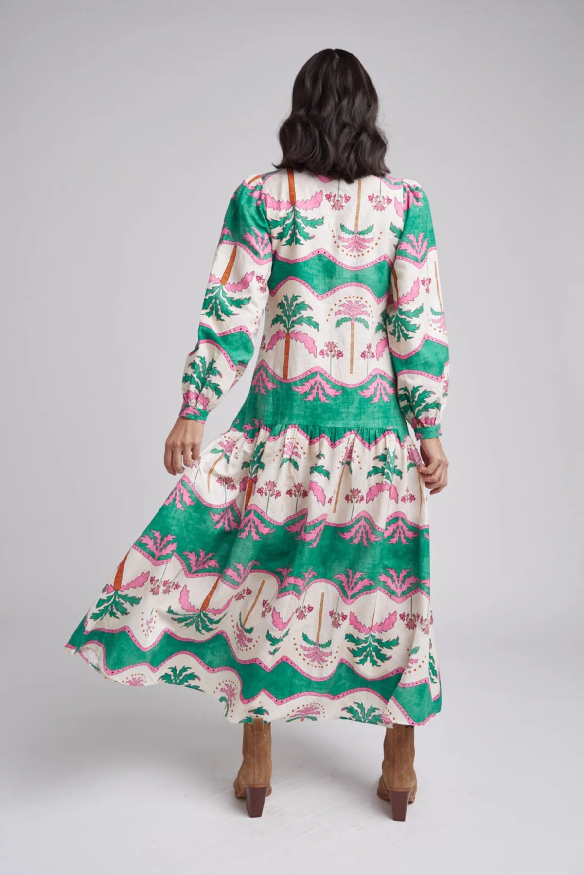 Drop Waist Maxi Dress - Palm Tree Print