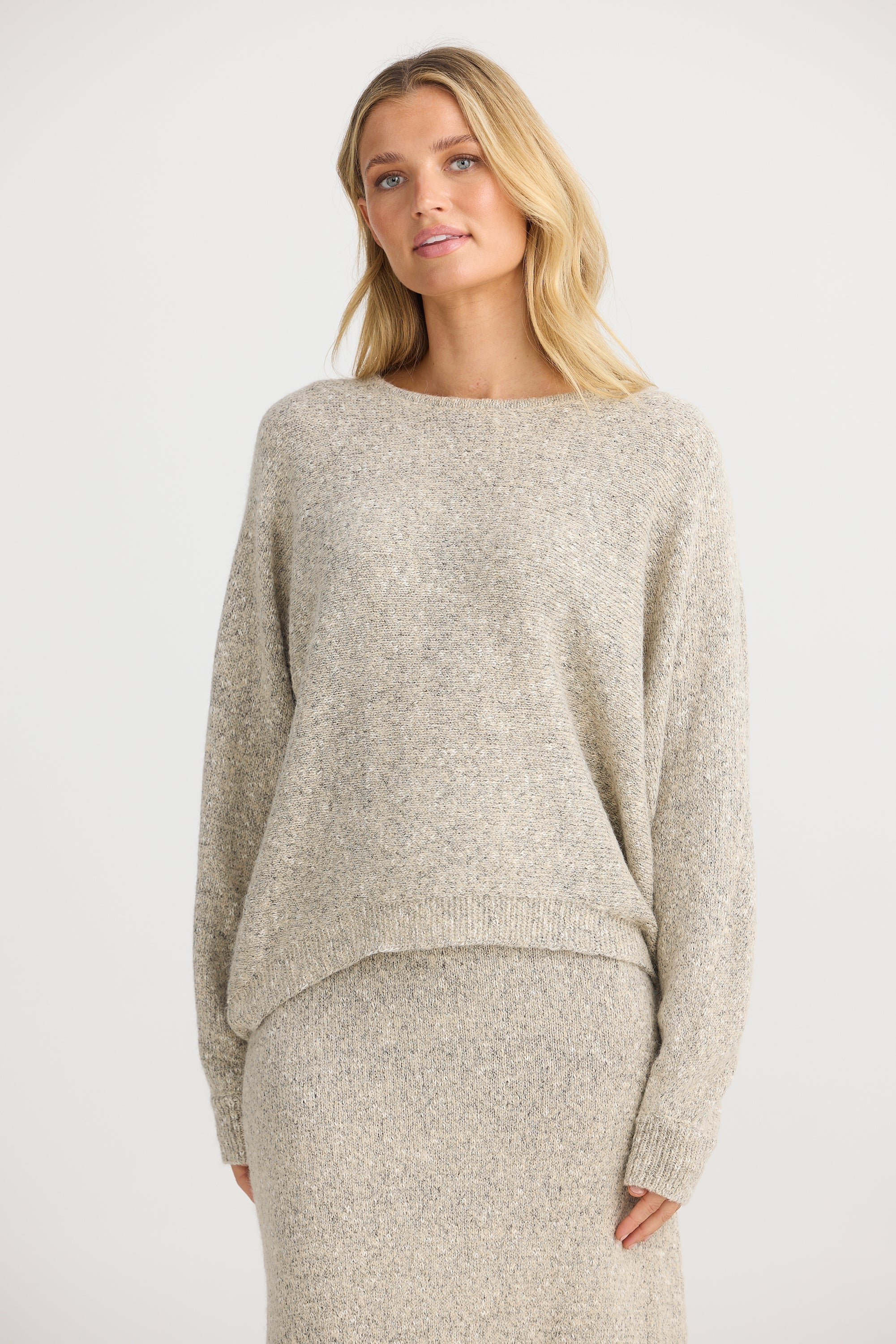 The Freddie Knit in Oatmeal is the ultimate layering essential for relaxed, everyday style. Designed with comfort in mind, this soft-touch knit features a round neckline, relaxed silhouette, and batwing sleeves for a flattering drape. Subtle ribbing at the hem and cuffs adds a refined touch.