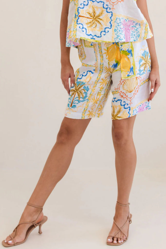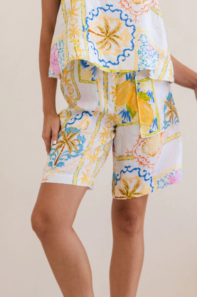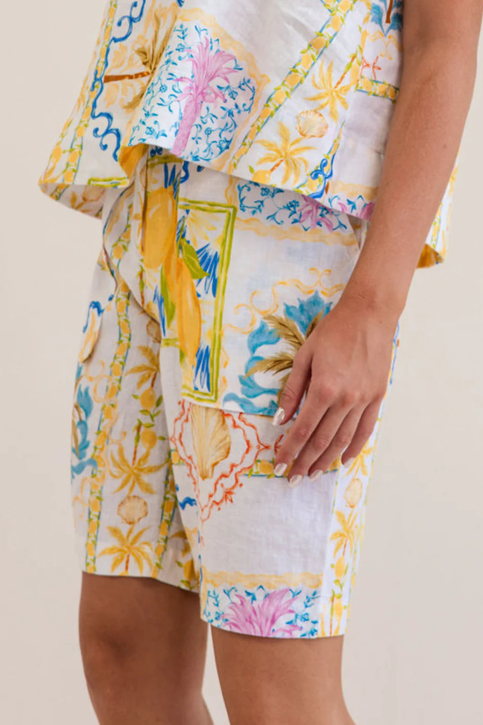 Linen Elastic Waist Pocket Midi Short - Amalfi Dreams