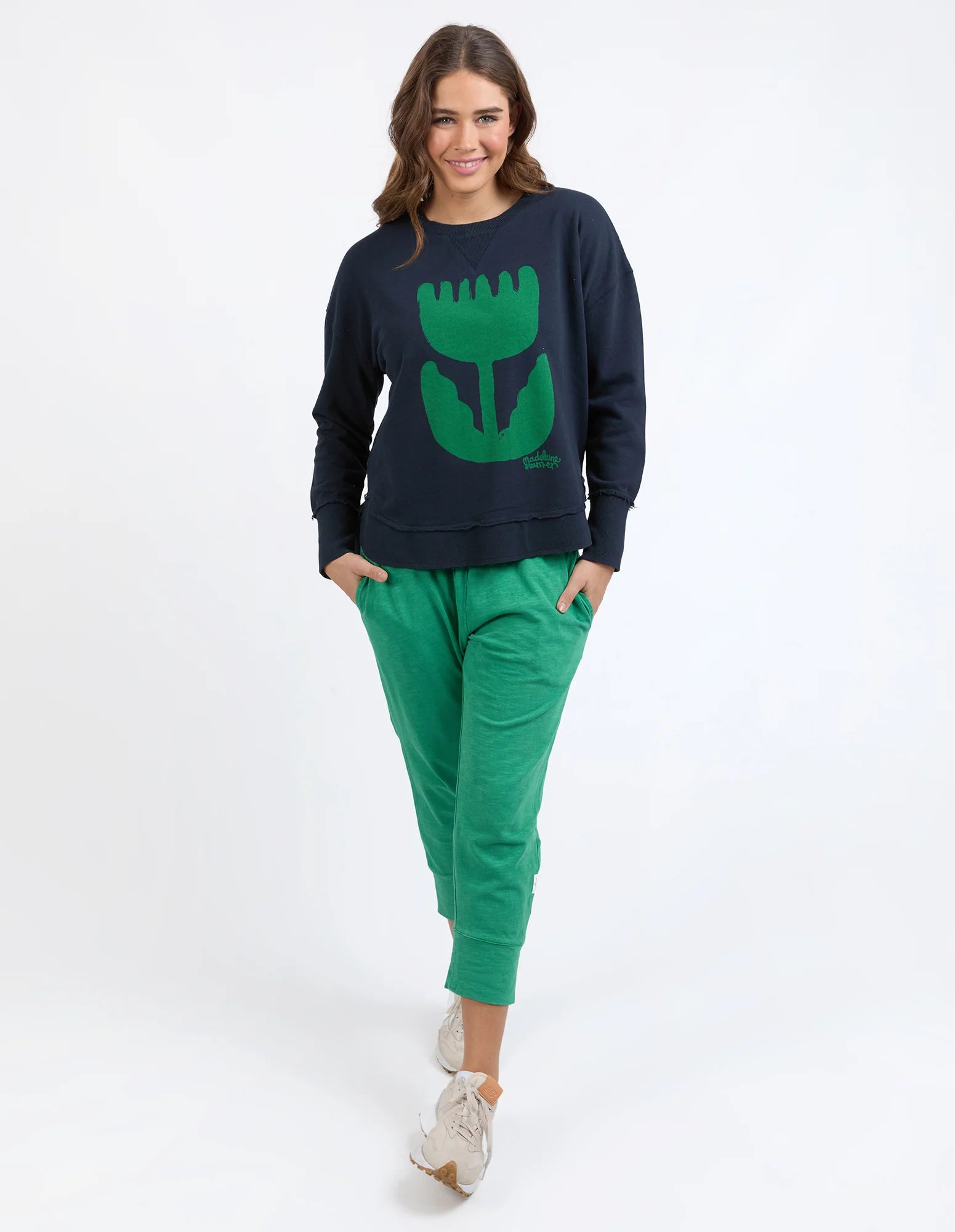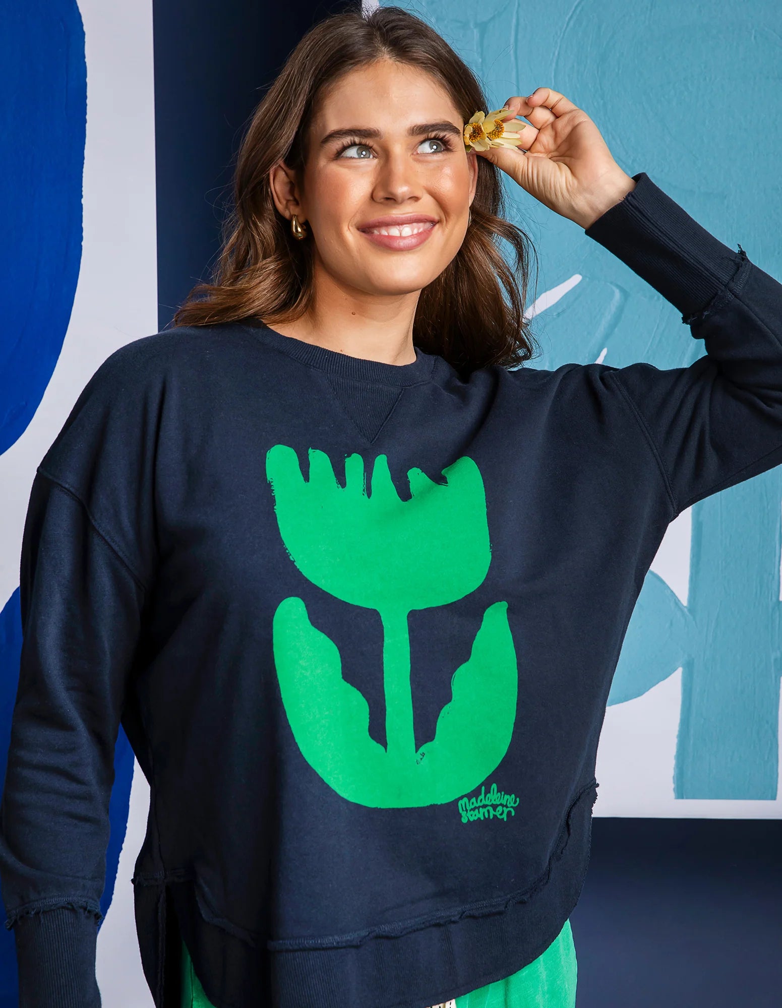 A Limited Edition piece from the 2025 Artist Collaboration | Elm Lifestyle x Madeleine Stamer this effortless and fun classic Elm Crew features one of Madeleines exclusive prints. Guaranteed to make your outfit colourful and fun this crew looks amazing when worn atop your favourite jeans or team with simple black pants for a chic and unique look.