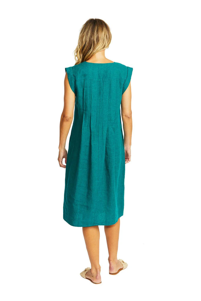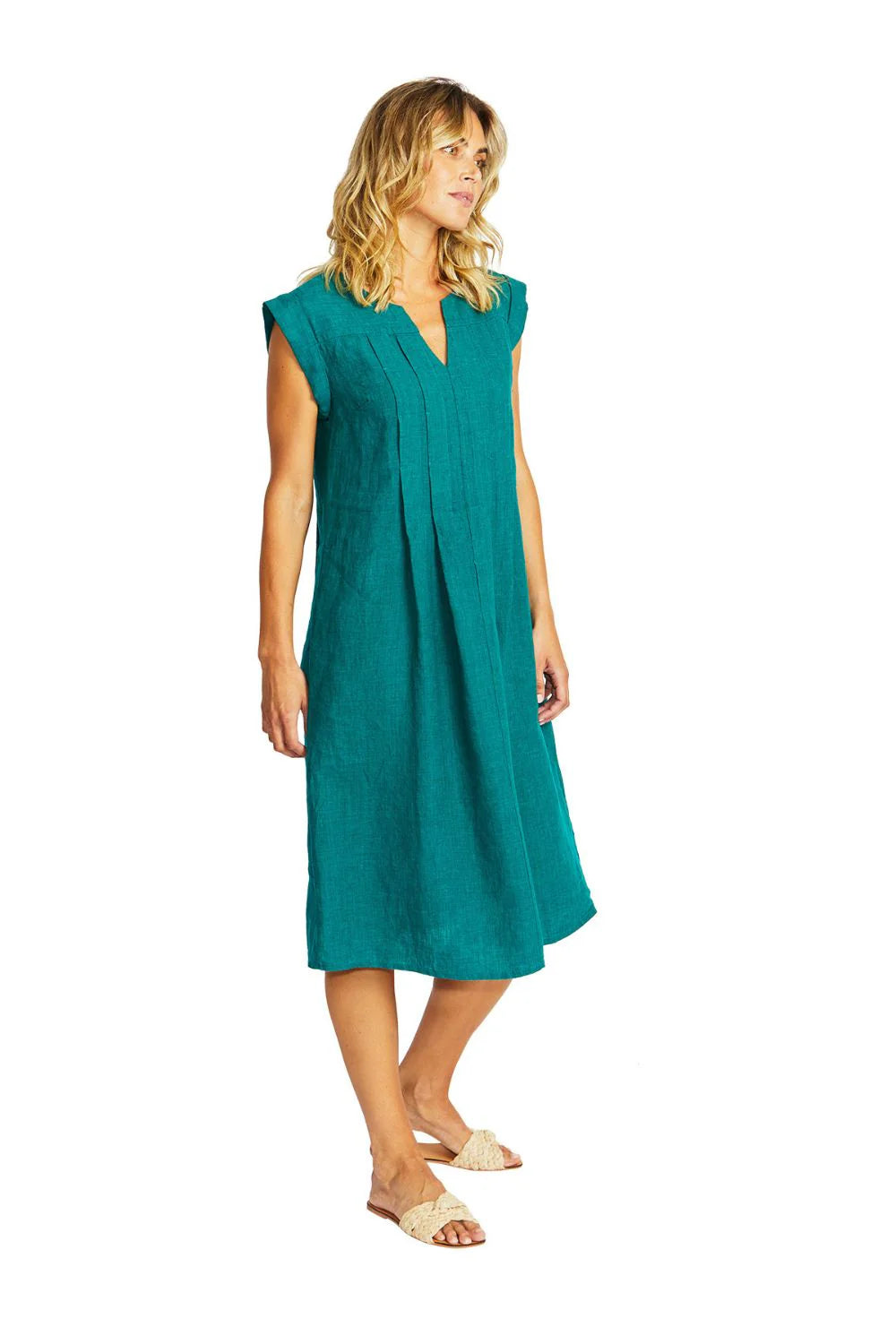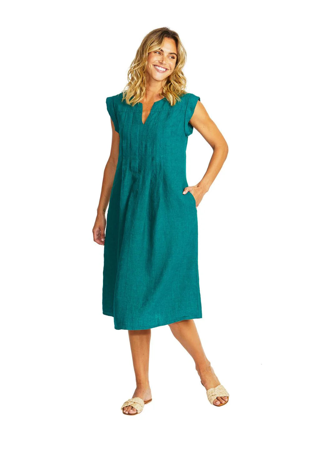 The Maria Linen Pintuck Dress blends timeless elegance with casual ease, offering a vibrant poppy colour that adds cheer to an occasion.